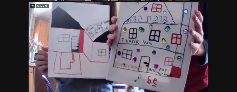 We Zoomed around the room sharing ideas, samples of home blessings, and then each student and their family prepared, designed, and created beautiful Birkot Habayit (Blessings for their Home).